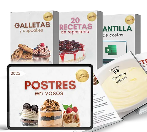 El ebook “Postres en Vasos en Tendencia” es mucho más que un simple recetario. Además de ofrecerte +30 recetas innovadoras de postres en vaso, te brinda una experiencia completa para que puedas iniciar tu emprendimiento desde casa o, si ya tienes un negocio, impulsar tus ventas con propuestas creativas que te harán destacar frente a la competencia.